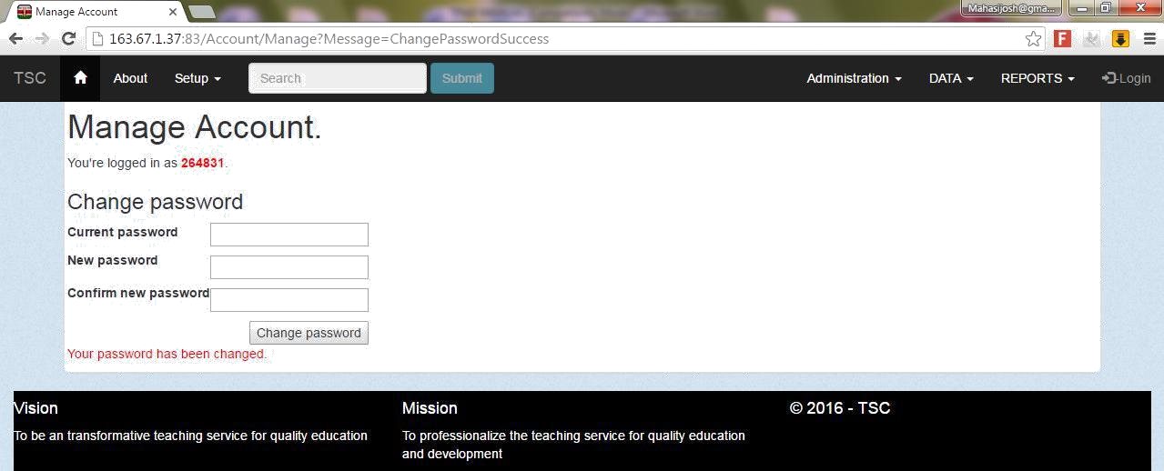 9. Type in your TSC Number as your username and your new password in the