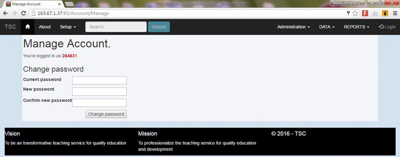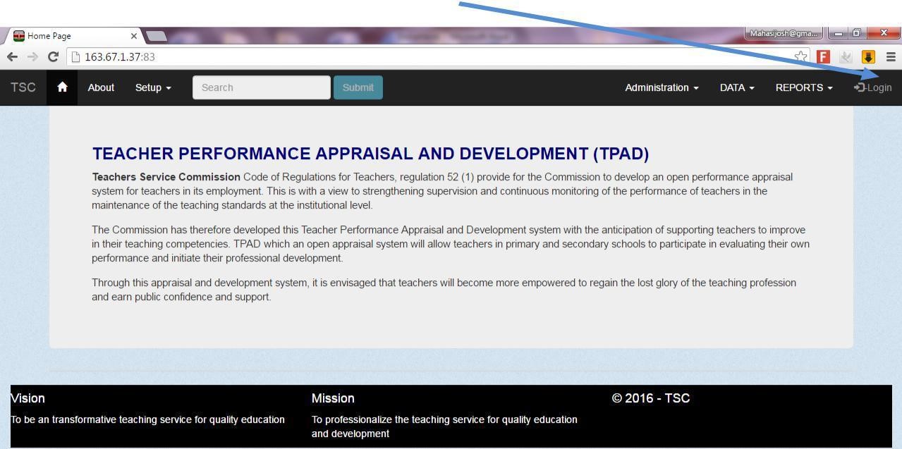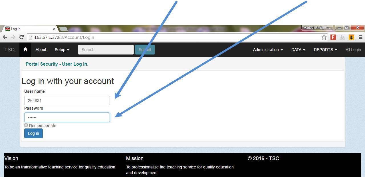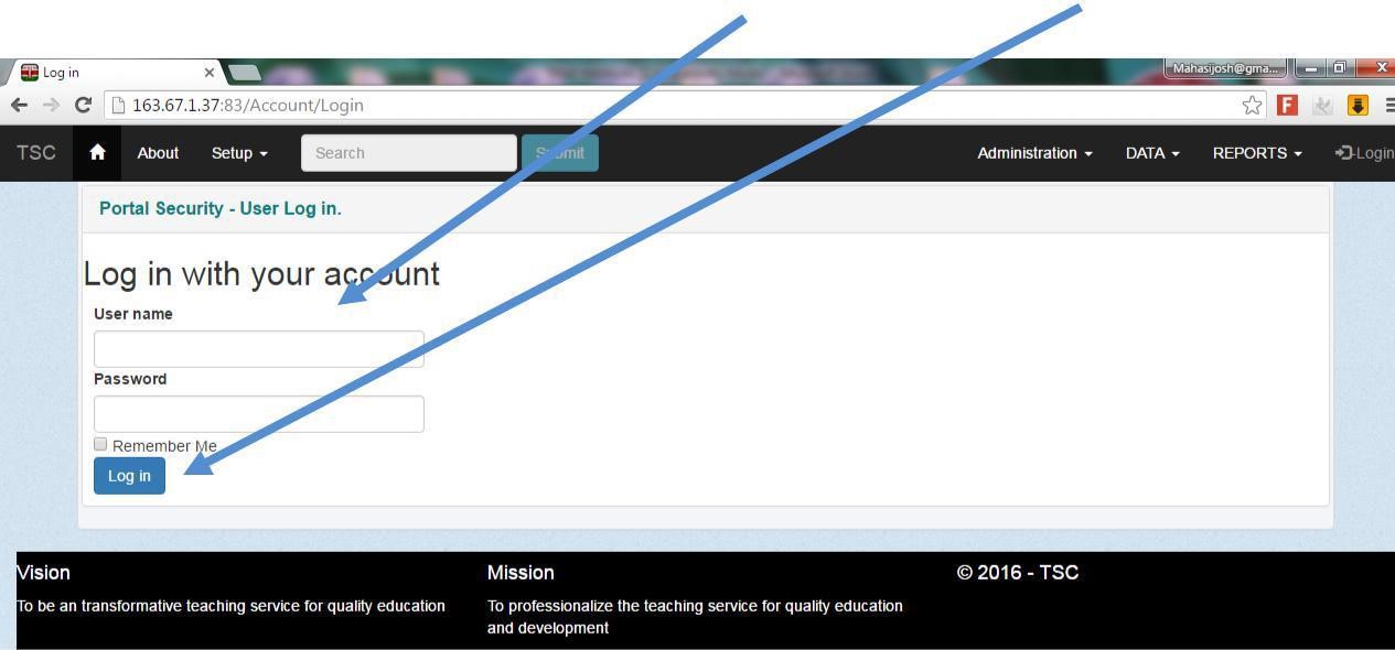 5. On the login screen type your TSC Number as your username and password