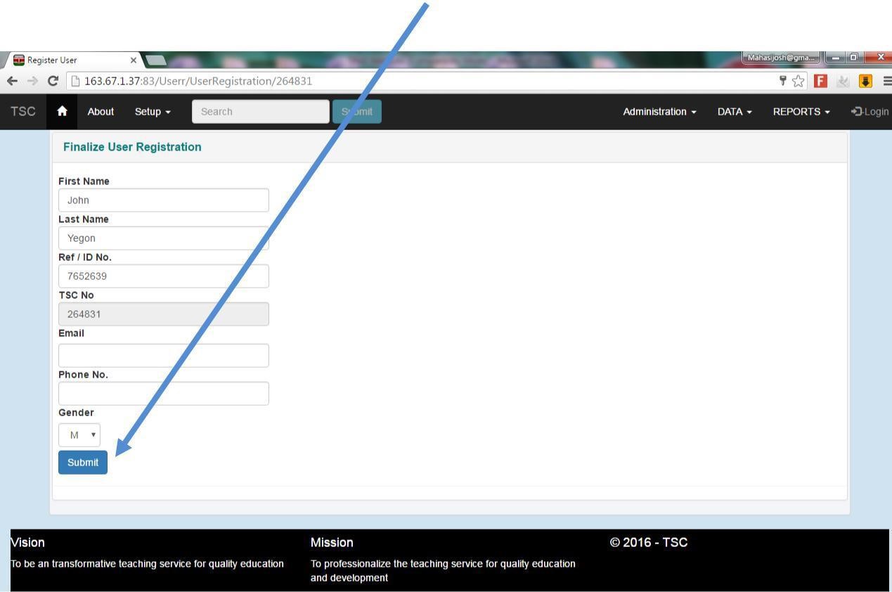 10 . Finalize your registration and click submit button