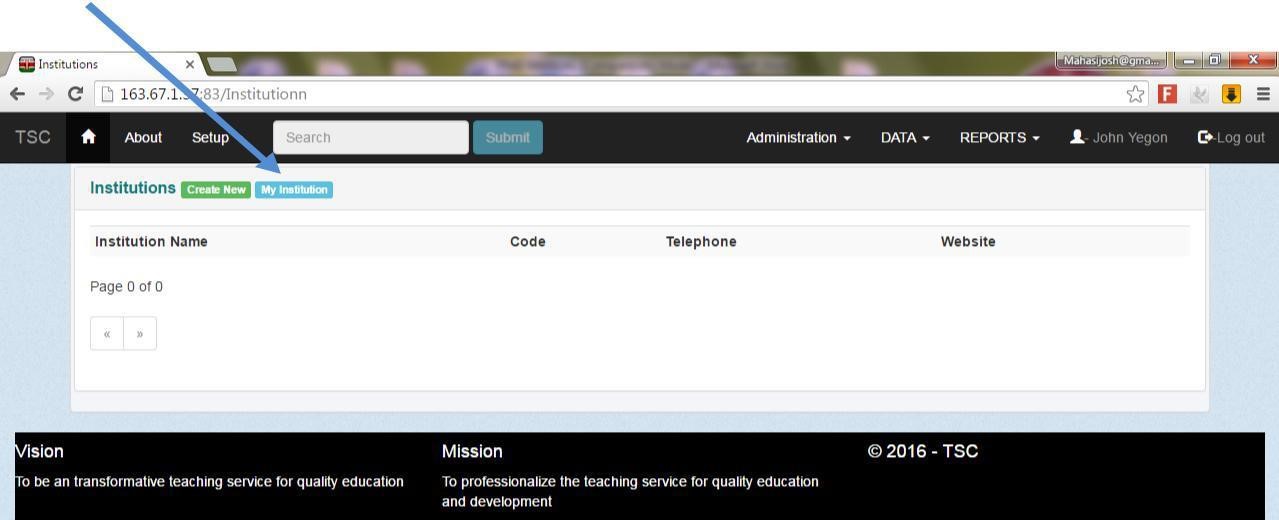 13. Click on my institution tab as shown