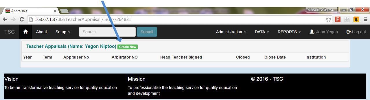 15. If the appraisal form is not displayed, click on the create new button