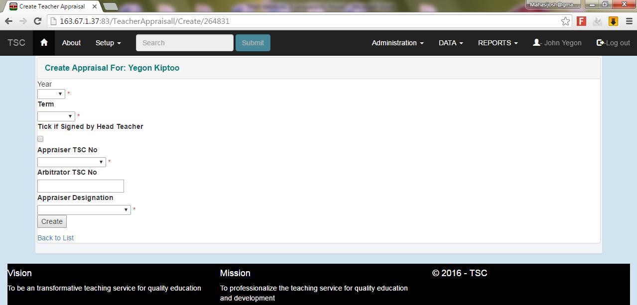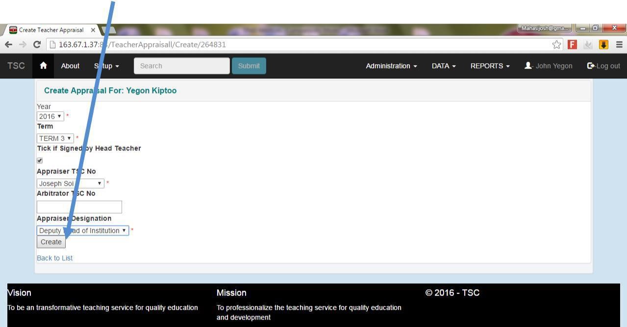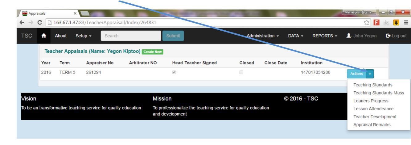 14. The list of the teachers in the institution will be displayed. Click appraisal button alongside your name.