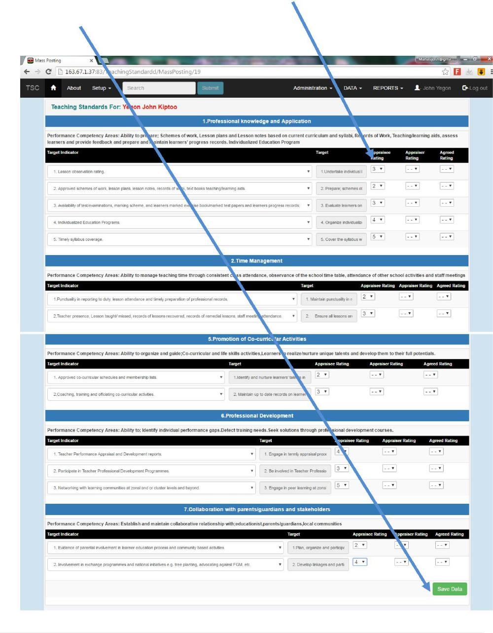 19. For example, click on the teaching standard mass to appraise/rate yourself accordingly then click the save data button