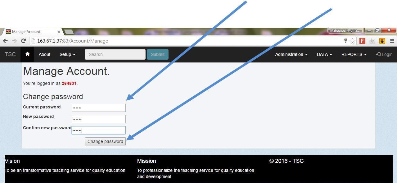 7. In The manage account screen type in to change your password accordingly and then click on the change password button.